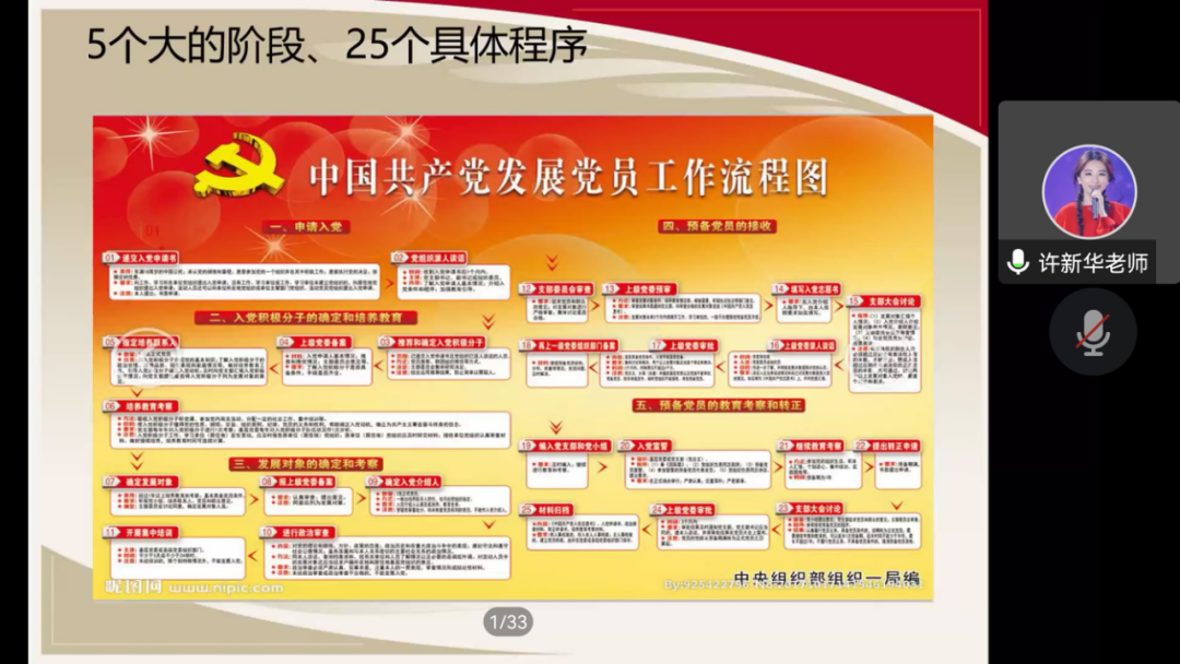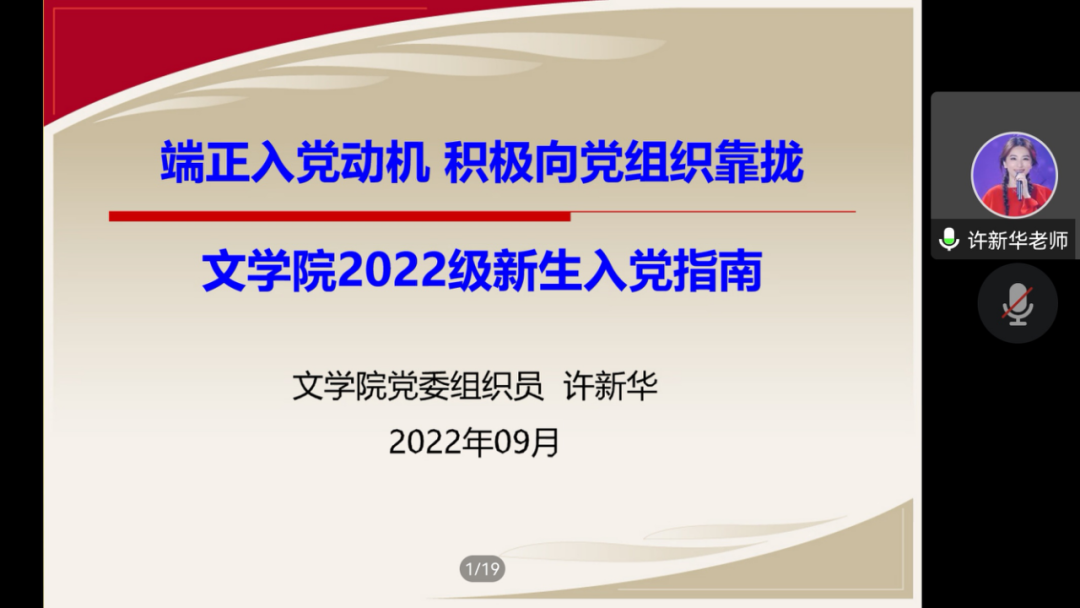 9月18日上午,公司党委组织员许新华老师为22级新生做入党指南宣讲。本次的宣讲主题是“端正入党动机 积极向党组织靠拢”。许新华老师首先对中国共产党的性质、宗旨,党员的权利、义务以及党的最新理论成果习近平新时代中国特色社会主义思想进行简要介绍。许新华老师从“发展党员的政治标准”和“入党程序”两个方面做详细解读。发展党员把政治标准放在首位,老员工要端正入党动机,树立共产主义信念,践行全心全意为人民服务的宗旨,认真学习习近平新时代中国特色社会主义思想,争取早日在组织上、思想上入党。许新华老师详细介绍了入党的5个阶段、25个具体程序,强调入党具有严格的程序,每一个流程都会考察申请人在思想、政治、学习、工作、生活等各方面的表现。最后,许新华老师详细讲解如何写好入党申请书,并对与会员工的入党问题进行解答。本次宣讲对加强新生对党的认识、吸引优秀员工积极向党组织靠拢具有重要意义。