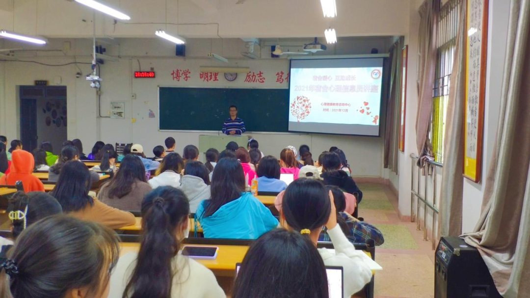 12月11日下午,pa娱乐游戏在博东109举办以“宿舍暖心,互助成长”为主题的心理辅导讲座。本场讲座由公司心理辅导站站长廖利明主讲,2020级和2021级130名宿舍心理信息员参加。