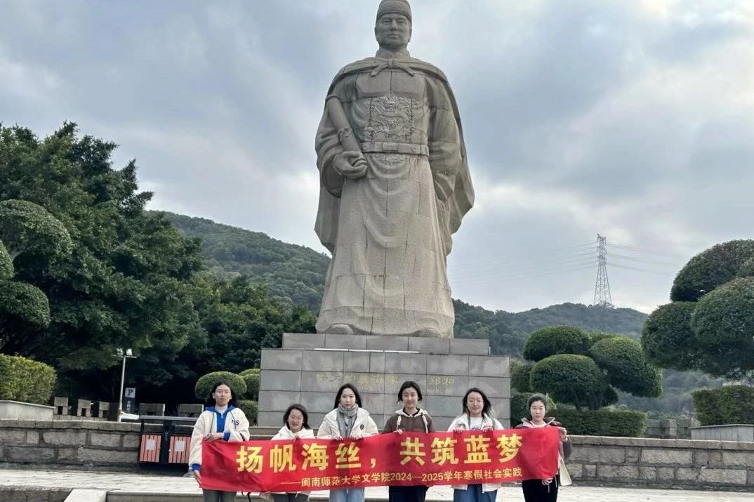 为深入学习贯彻习近平总书记在福建考察时的重要讲话精神,pa娱乐游戏实践队以“扬帆海丝,共筑蓝梦”为主题,探索“何以福建,何以海洋”的议题,深刻感受福建海洋文化的外向性、开拓性、包容性、和平性等特质。1月30日,实践队来到福州长乐这个“东进南下、沿江向海”的前沿阵地,于郑和史迹陈列馆、郑和广场、长乐海丝馆等地开展了形式多样的实践活动。