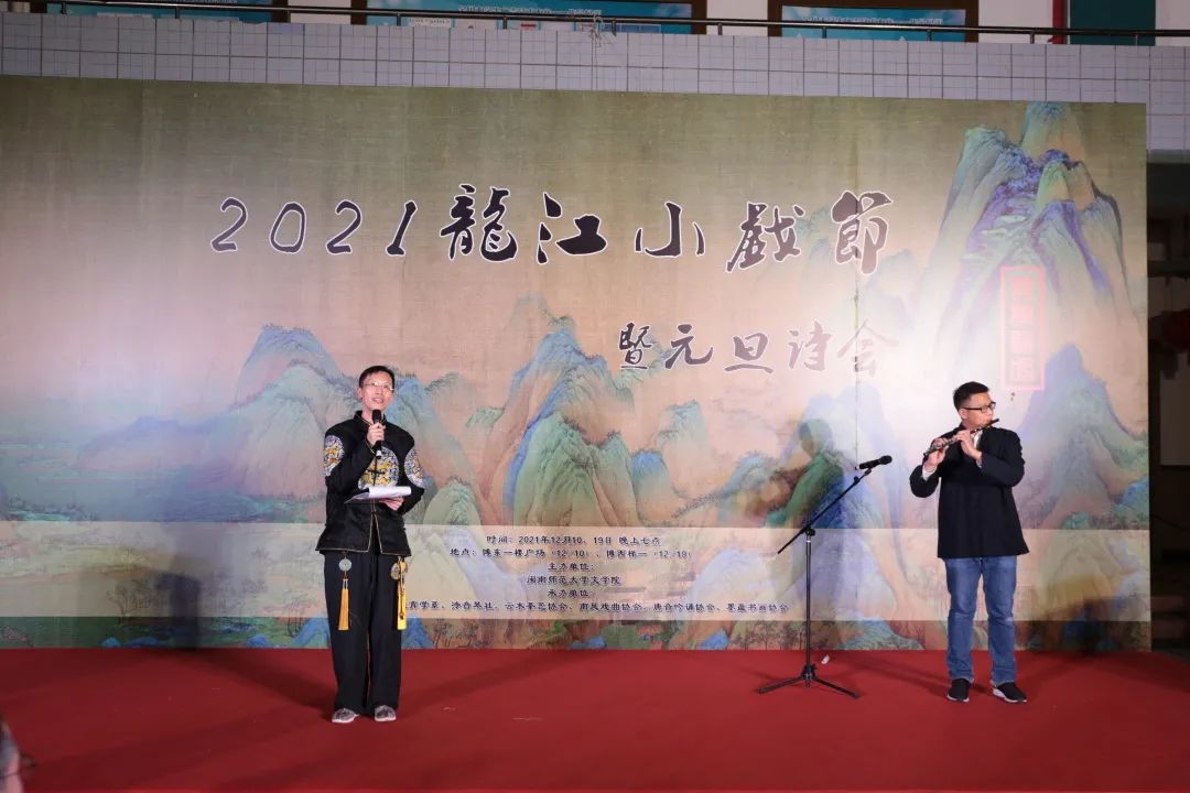 活动伊始,黄金明经理通报了pa娱乐游戏获批博士点的喜讯,对公司本学年工作予以点评。随后黄金明经理与赵丽霞书记合诵食指的《相信未来》,诗中寄寓着两人对pa娱乐游戏的祝福与期望;墨蕴书画协会的《旧岁逢新皆胜意,疫霾尽过共欢愉》创作,该创作表达了对新年的期待以及对抗疫胜利的祝愿。云水茶艺协会展示自身特色,献上《来呷茶——闽南功夫茶艺展示》。泠音琴社呈现的古琴独奏《客至》与古琴弦歌合唱《鹿鸣》,南风戏曲协会表演了《开漳圣王传奇》、歌仔戏与黄梅戏双版本的《梁祝——十八相送》。英语及闽南语双版本的《李尔王——斗爱篇》重镑登场,英语优雅,闽南语亲切,二者相辅相成。唐音吟诵社的《游山西村》与《清平乐村居》以古朴的唐音为观众展现村居生活的美好,让观众们眼前一亮,诵者诉说着春社将近的喜悦,听者领略着丰年留客的欢愉。汉语国际教育林昊天同学的《贵妃醉酒》也不甘示弱,“贵妃”身着华服,步步生莲,再现了大唐气象,获得满堂彩。张伯宇老师与陈瑞松老师合作《闻笛》,笛声和着诗音,尽显儒雅之风。节目最后全体合唱《沧海一声笑》。歌声嘹亮,唱尽了pa娱乐游戏人心中的侠客梦。