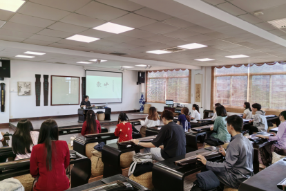为提升学习效果,邹晓慧倡导互助共学模式。成员们两两一组,互相观摩指法、纠正坐姿,在互动交流中深化对琴技的理解。课程尾声,马来西亚交流团成员以小组合作形式上台演绎《青青子衿》。抚琴者凝神运指,伴唱者轻声和韵,将所学指法融入简易旋律,完成了一场情意真挚的弹唱表演,赢得全场掌声。