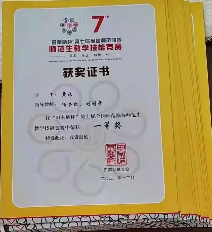 校教师技能竞赛中,我获得第五名,这是对我这三个月努力的认可,同时也是“田家炳杯”全国师范生教学技能竞赛初赛的入场券。国赛,没有前人经验总结与铺垫,杏红老师便领着我在这陌生的领域慢慢摸索,拜访一线名师、参考公司教师的文本分析、精心打磨教案、邀请专业团队录制视频,整个过程老师一直引导着我、支持着我、鼓励着我。初赛的成绩十分令人惊喜,全国147所公司890多名选手参赛,我以语文组第六名的成绩“高位出道”。但,欢欣与喜悦没有持续很久,我不由得让为决赛紧张起来。可能“爱笑的人运气不会特别差”。决赛赛制的改变,让我能够做出更充分的准备。线上抽题,线下录制,投递视频参赛。两天的时间,各方的支持,杏红老师、闽彦老师等老师细致入微的指导,伙伴朋友们的场外的支持与帮助,让我在决赛录制那天能够一往无前,心无旁骛。