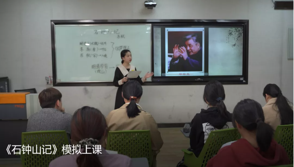 让我对教学产生浓厚兴趣的契机是一场旁听的教师评课,老师们对一篇文本深入挖掘,解读之精妙,令人拍手称绝。我当时只有一个想法:我也想成为这样口吐莲花的老师。三个月的实习,三个月的训练让我更深入地了解教师职业,更熟练地运用教学技能。向阳老师妙趣横生的课堂,陈丹老师充满尊重与友爱的班级氛围,廖敏老师令人眼前一亮的板书设计,闽英老师提纲挈领的专业指点……无一不潜移默化地影响着我,让我从心里慢慢靠近教育与教学。(图)