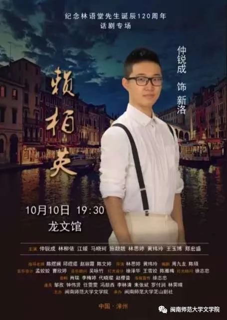 仲锐成,2013级汉语言文学专业员工,曾任pa娱乐游戏艺术团主持诵读部部长、芝山剧社成员。在校期间多次主持校园各类活动,多次获得“两赛”特等奖,创作、导演、参演多篇话剧作品。毕业后从事商务主持工作,现为仲锐成主持设计工作室主理人,福建司想者主持团队成员。