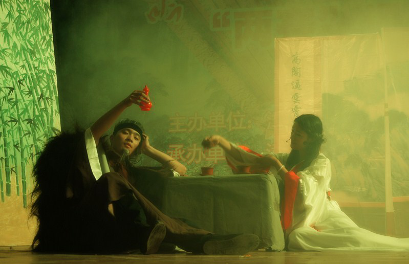《戏剧鉴赏》课不仅仅有表演的环节,还让部分同学们担任编剧和观众的身份,这就引导了我走出了戏外,从另外一个视角去靠近戏剧文学。首先是编剧,邱煜焜老师在当年组织几名同学复兴课本剧,那段时间我们的创作灵感集中爆发,在校时,我们就完成了“唐宋八大家”(这里的唐宋八大家并不是文学意义上的唐宋八大家,而是我们选择了这两个朝代的八位文人作为主角,我们师生雅称其为“唐宋八大家”)的创作,我编写了《大江东去》和《月满西楼》两部课本剧,把苏轼和李清照的人生搬上了舞台。因我自己做了编剧又当了演员,可以十分明显地感觉到这两种靠近文学的方式带给我们的不同。做编剧时,我需要查阅与主人公所有相关的材料,找到他们那些千古流芳的经典诗作是出自哪个人生阶段,找到他们生命中最具戏剧性的一段人生,找到他们生活的时代背景、他们的人际关系……把这些主线、副线都安排清楚了,才能动笔设计剧作。课本剧有个关键点在于,我们需要把戏剧带到中公司园去,让中员工们看完表演之后,能够体会文学的意境与思想。就这个关键点,当年丰富了许多立志为师的同学们的教育观。