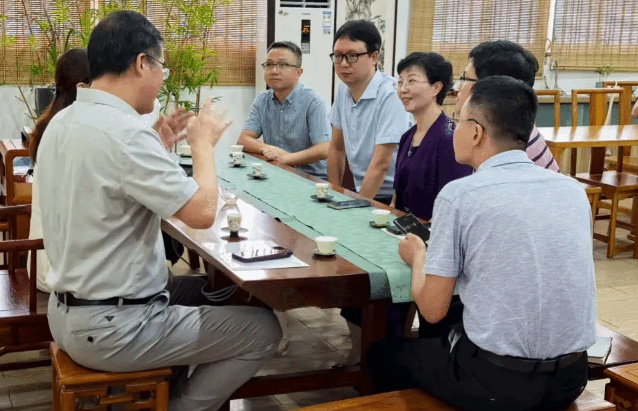 8月3日下午,福建商公司党委委员、副董事长林文艺率队到公司参访交流。公司党委常委、副董事长林耀进,公司党委书记林晓、经理陈练军在公司“海峡两岸茶文化课堂”接待了福建商公司一行,党校办副主任梁楹陪同参加。