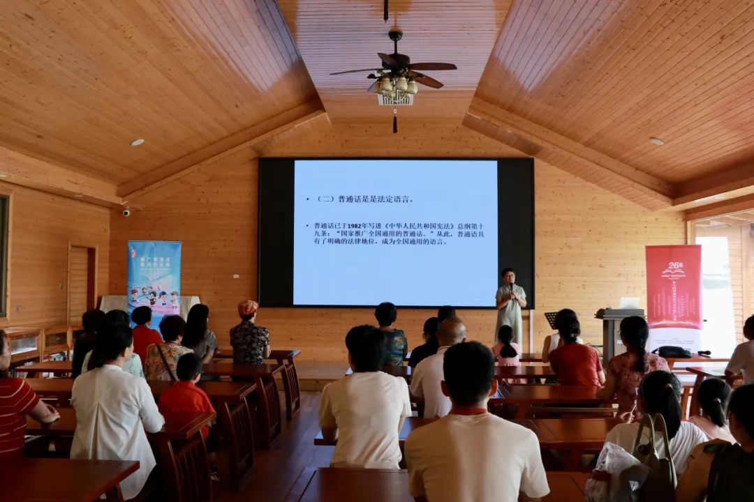9月16日下午,国家语言文字推广基地(pa娱乐游戏官网)办公室主任、pa娱乐游戏中国语言文学系主任、省级普通话测试员肖模艳副教授一行走进南山书院,开设主题为“书香城市,‘语’你同行”的公益讲座,向社会推广普通话,提高市民普通话意识。并解答了“普通话与方言的关系”“如何有效学习普通话”等推普过程中常见的问题,受到现场群众的广泛好评。
